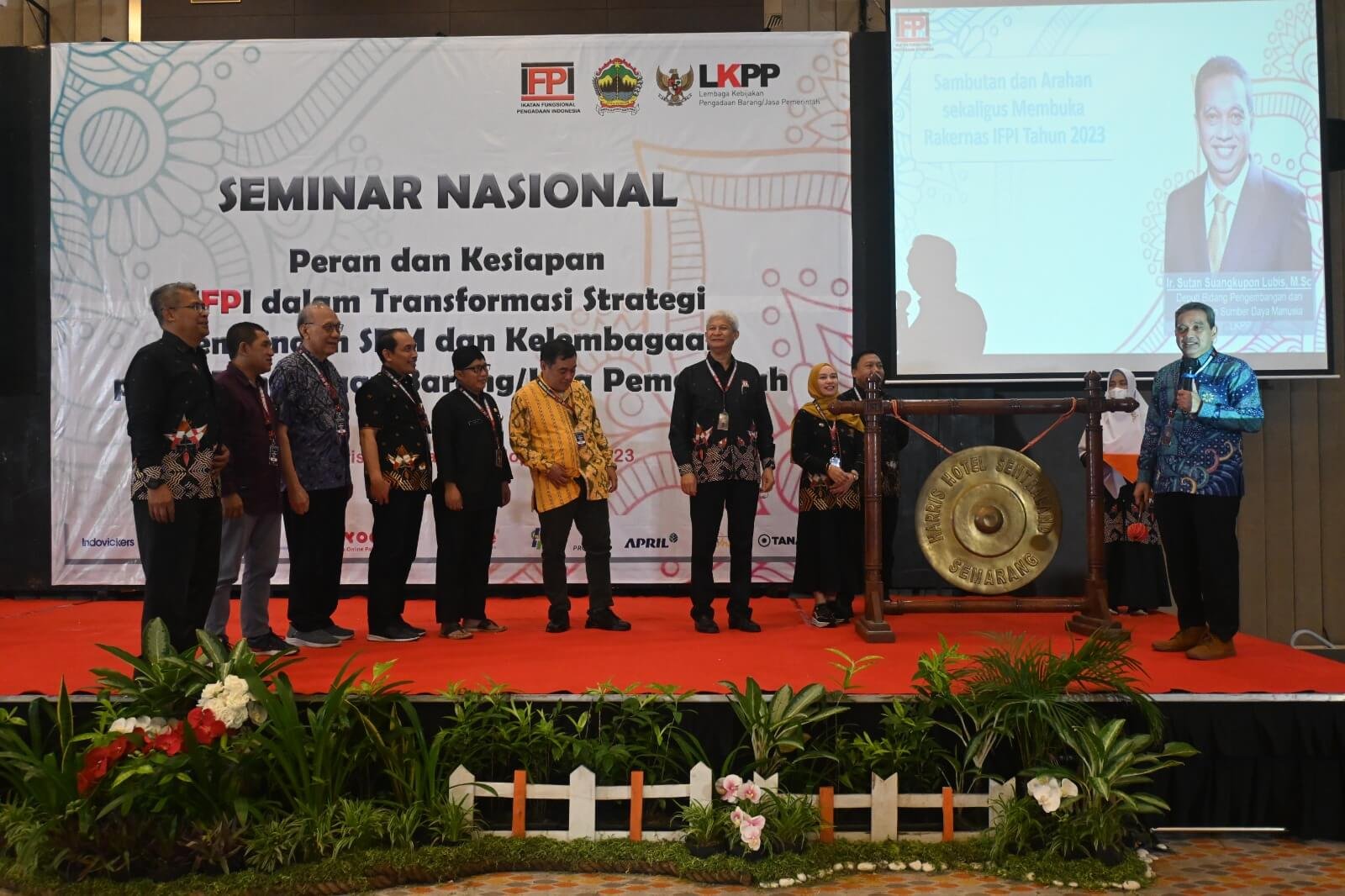 Sambutan dan Arahan dari Kepala LKPP sekaligus membuka secara resmi kegiatan Peringatan Hari Jadi Ikatan Fungsional Pengadaan Indonesia (IFPI) Ke-8 Dan Forum Komunikasi Jabatan Fungsional Pengelola Pengadaan Barang/Jasa ditandai dengan Pemotongan Tumpeng